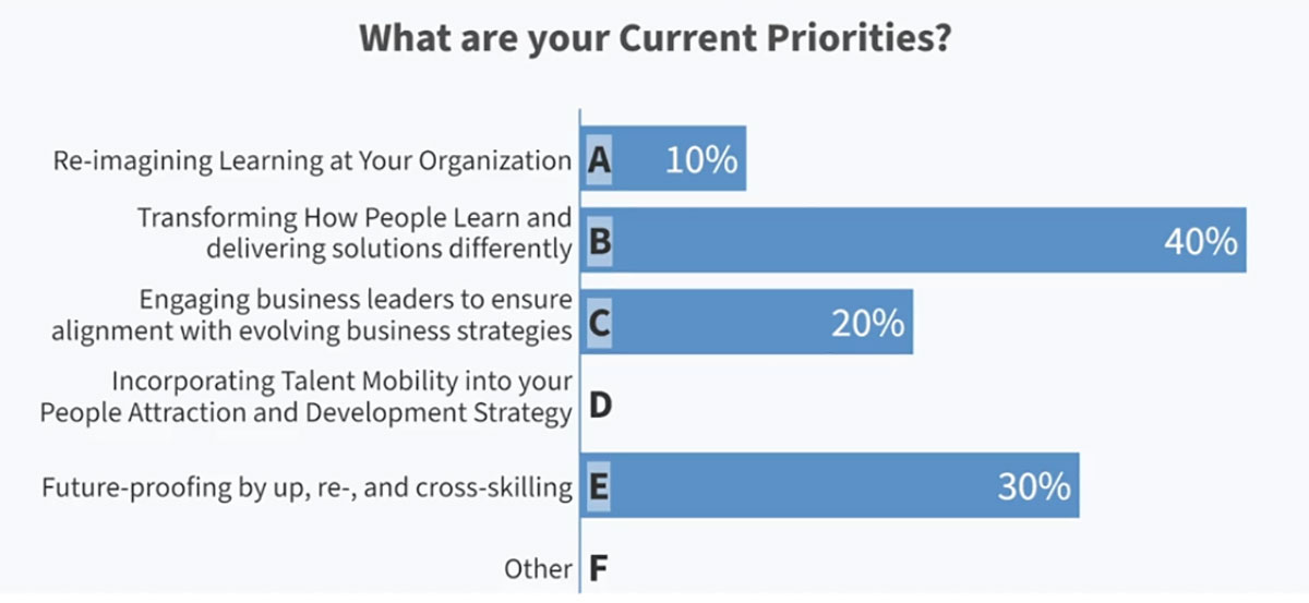 While it did not rate as a key priority for the ad-hoc survey, many companies also need to challenge and transform their L&D infrastructure for relevance, optimization and design.