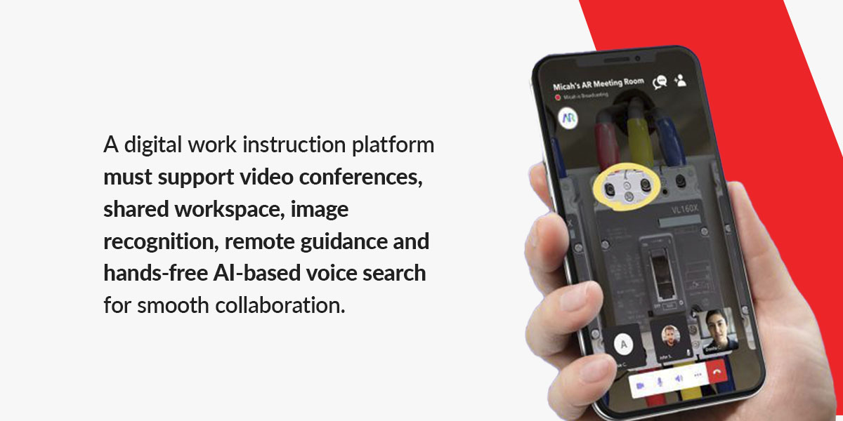 A digital work instruction platform must support video conferences, shared workspace, image recognition, remote guidance and hands-free AI-based voice search for smooth collaboration. When internal communication is effective, employees feel more comfortable asking questions, improving overall productivity and reducing miscommunication and confusion.