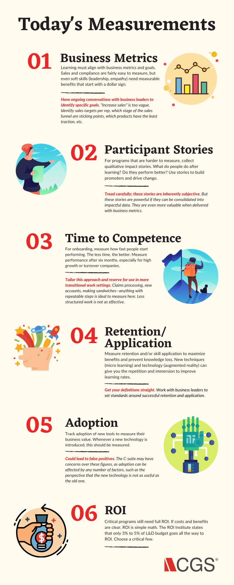 In an age of global disruption, more organizations understand how a robust, adaptive L&D program can prepare their people and the business for the future. But how can organizations effectively measure learning effectiveness and ROI? Metrics have changed over the years, especially as learning has added a variety of soft skills to the requisite technical skills, which are more easily measured.