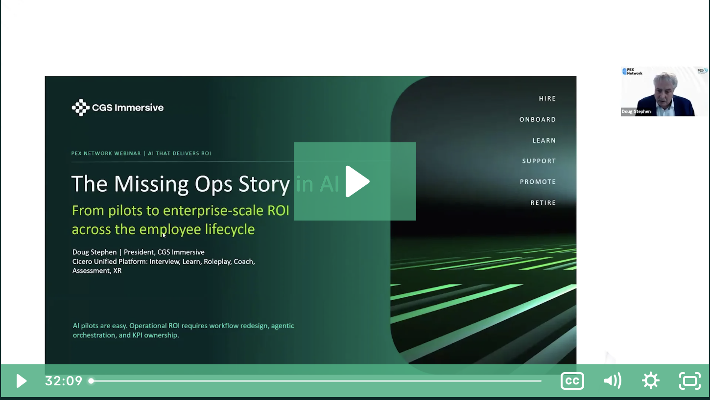 Watch to see how leading organizations use agentic AI and immersive roleplay to capture tribal knowledge, orchestrate work from recruitment to retirement, and prove real operational ROI.